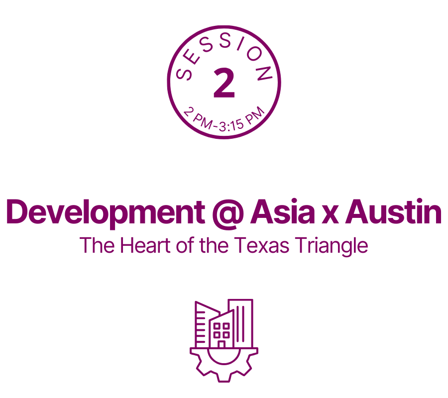 | 2:00 - 3:15 pm [session info] | Development @ Asia x Austin: The Heart of the Texas Triangle |