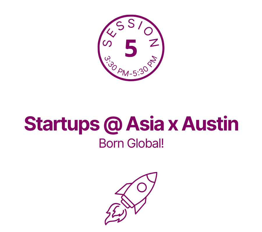 | 3:30 - 5:30 pm [session info] | Startups @ Asia x Austin: Born Global! |