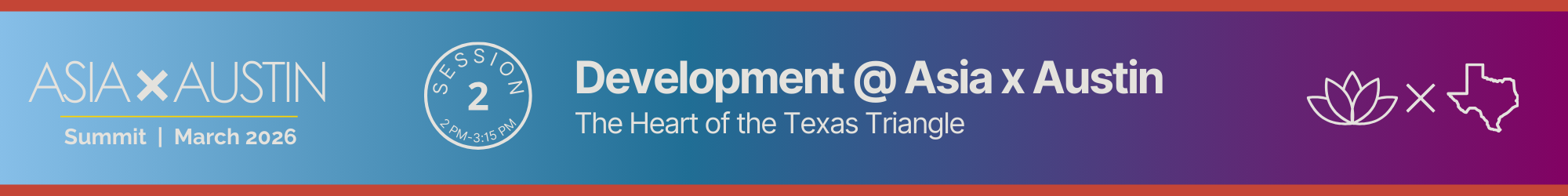 | 2:00 - 3:15 pm [session info] | Development @ Asia x Austin: The Heart of the Texas Triangle |