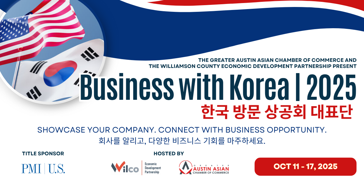 Join the Williamson County Economic Development Partnership and the Greater Austin Asian Chamber of Commerce as we travel to Korea to visit some of the country's premier economic hubs including Seoul, Gwangmyeong, and Yongin Special City.