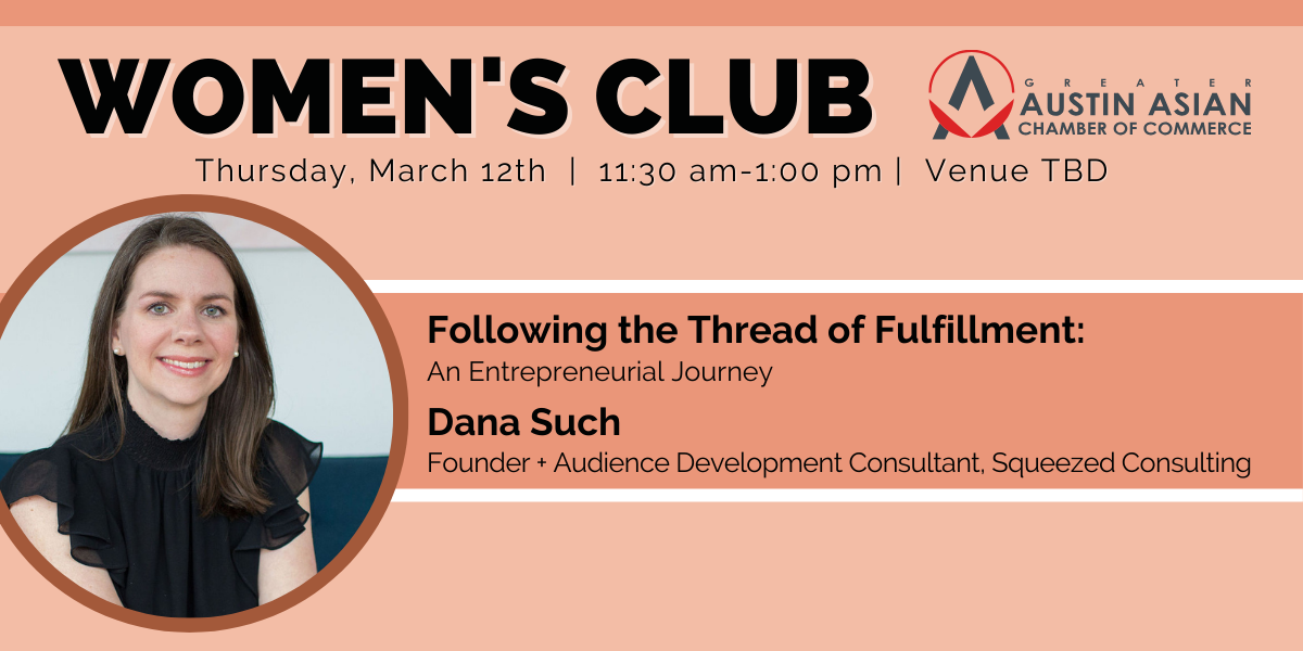 NOTE: Anyone registering for this event who is not a current GAACC member will receive a complimentary Associate-level membership to the Greater Austin Asian Chamber of Commerce. By registering, you agree to receive email communications from the Greater Austin Asian Chamber of Commerce.